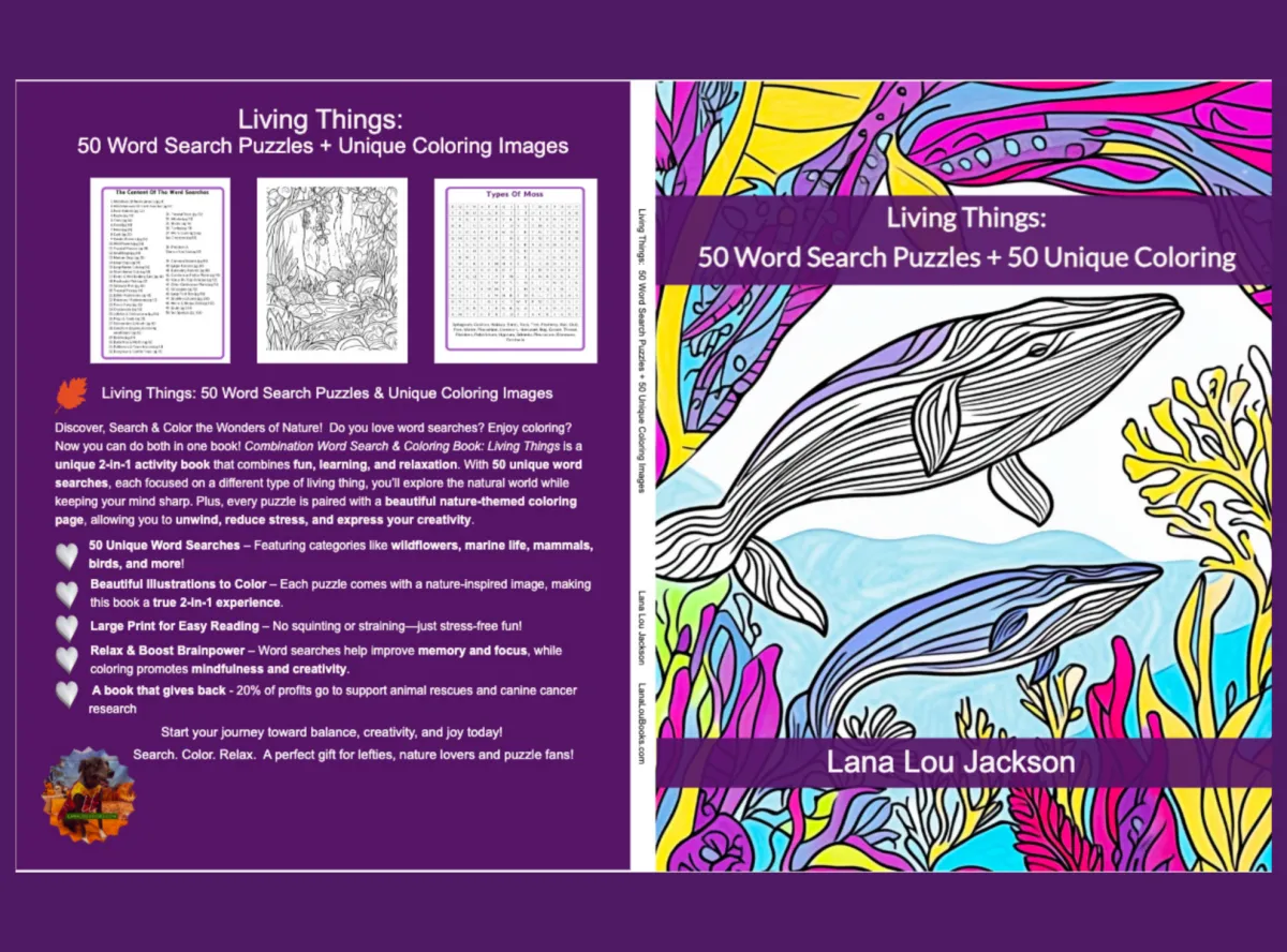 Even as she battles cancer again, Lana’s spirit lives in every creative work she inspires. Each coloring book, journal, puzzle, and piece of art now helps support canine cancer research and rescue programs that give other dogs their second chance.